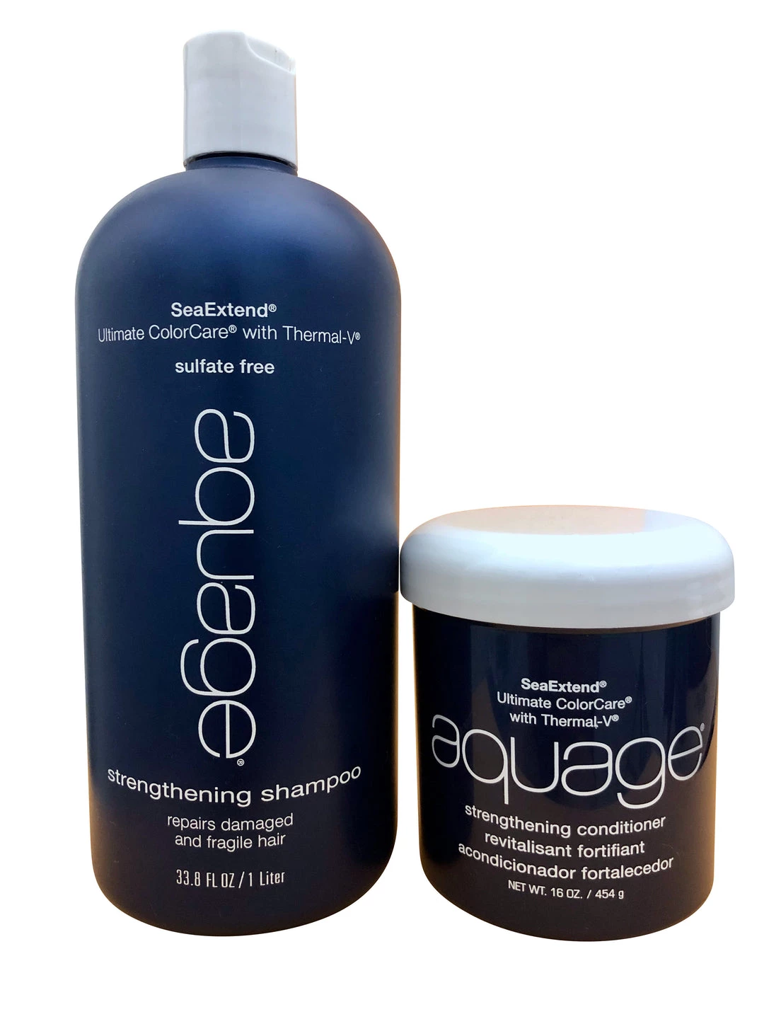 Aquage Strengthening Shampoo & Conditioner Set is a protein rich hair care routine that helps to strengthen and protect hair that is damaged and weak. Aquage Seaextend Strengthening Shampoo Damaged & Fragile Hair Sulfate Free helps to replenish your hairs moisture and inner strength. Aquage Strengthening Conditioner Damaged Hair repairs your hair, enhances elasticity and shine.