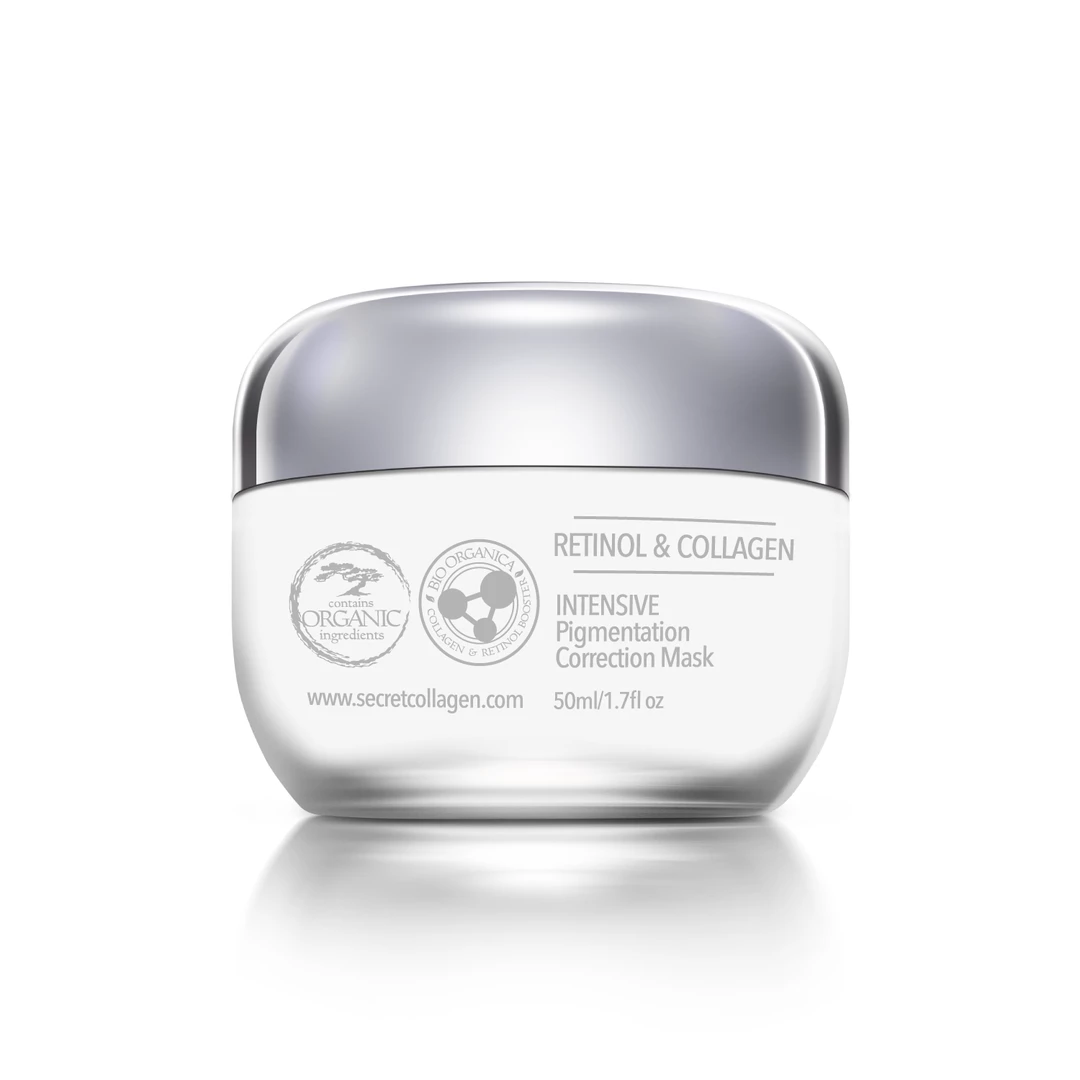 Brighten your skin and even skin tone with our Intensive Pigmentation Correction Mask. A Bio-Organica fusion of Retinol and Collagen, designed to stimulate collagen production and reduce the signs of aging. Combining high-performance brightening and anti-inflammatory ingredients with other restoring properties, helping to diminish dark spots, even skin tone, and minimize fine lines and wrinkles.