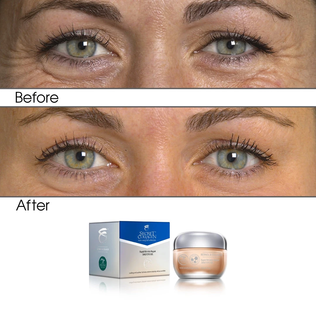 Cool and soothe your skin with our Rapid Wrinkle Repair Eye Gel. A Bio Organic fusion of Retinol and Collagen with other restoring ingredients, is designed specifically to combat the fine lines and wrinkles around your eyes, particularly those annoying crow’s feet.Formulated for the delicate and sensitive skin around the eyes, our light gel helps cool and soothe the skin while also providing skin hydration for younger looking eyes.