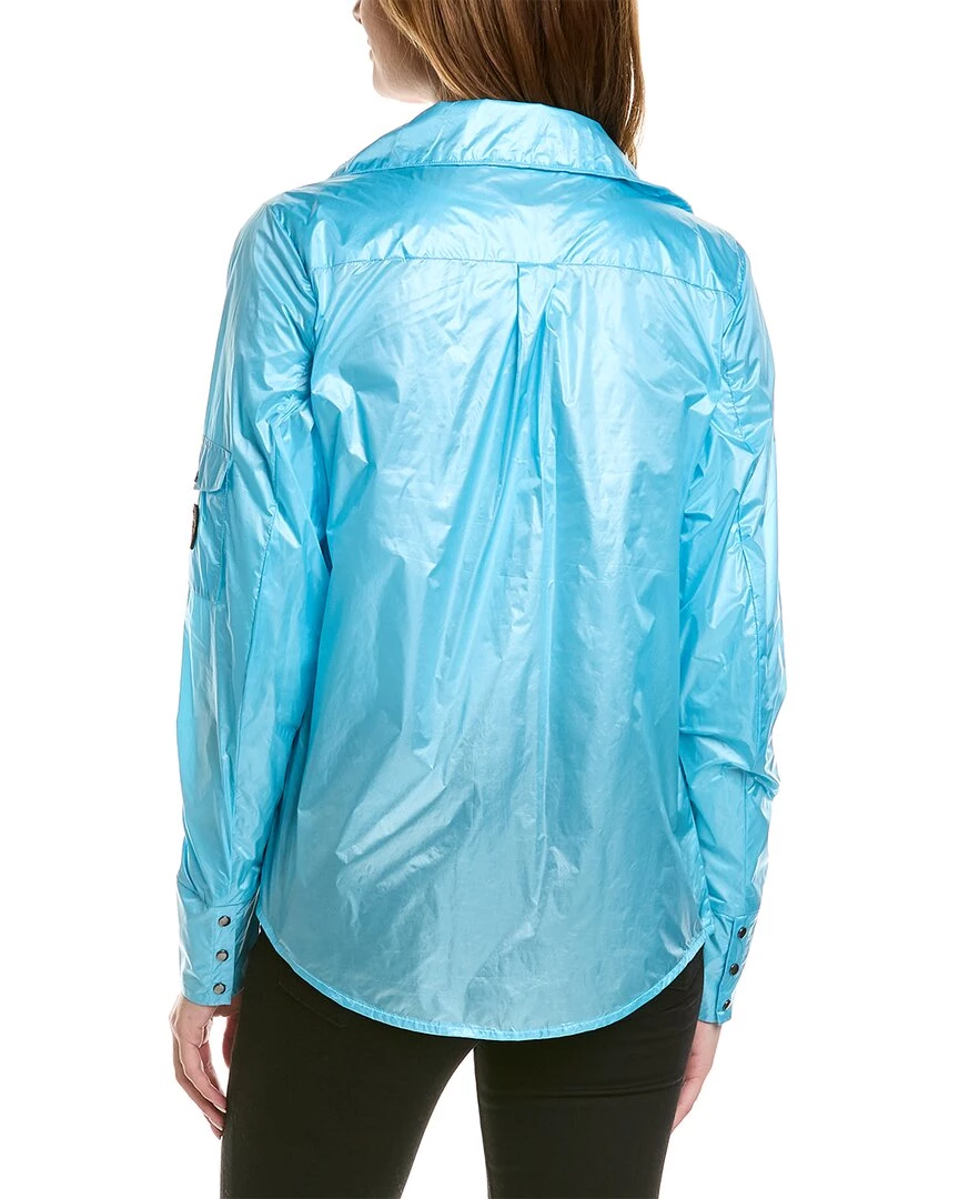 - Moon Wind Shirt In Powder Blue With Funnel Neck, Snap Cuffs, And Pocket At Left Sleeve