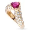 This gorgeous Van Cleef & Arpels flower-themed brooch can instantly revive your wardrobe. Add it to any basic outfit for a chic style update. The brooch measures 2.75″ x 2″ and features a polished yellow gold clematis flower frame with mother of pearl petals. At the center are spiked gold filaments plus round brilliant-cut diamonds with E color grade and VVS clarity grade.This Van Cleef & Arpels 18K Yellow Gold 0.60 ct Diamond and Mother of Pearl Clématite Brooch is offered in estate condition inclusive of a gift box.