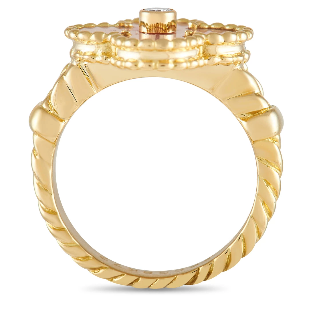 Budget 😀 women Van Cleef & Arpels 18K Yellow Gold 0.15 ct Diamond and 👩 Mother of Pearl Ring 💯