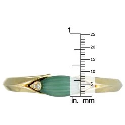 Boasting a compellingly elegant design that is attractively topped off with eye-catching gems, this sublime vintage piece from Van Cleef & Arpels offers an exceptionally classy appearance. The bracelet is made of radiant 18K yellow gold and it is decorated with a green jade and with scintillating diamonds that weigh 0.40 carats in total.